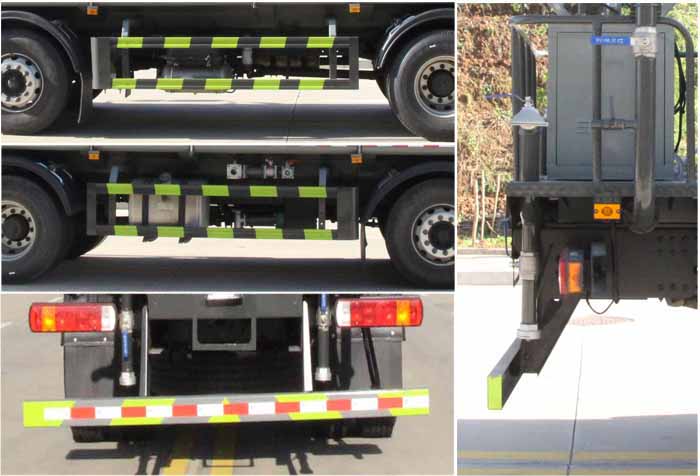 該車主要用于城鄉園林綠化噴灑作業;主要裝置為水罐及噴灑裝置;運輸介質:丙酮水溶液,介質密度:950千克/立方米.罐體總容量:16.59立方米;罐體有效容積:15.8立方米;罐體外形尺寸(長×長軸×短軸)(mm):6800×2400×1450.側、后防護材料均為:Q235碳鋼,連接方式均為:螺栓連接,后部防護截面尺寸(mm):120×50,后部防護離地高度(mm):490;ABS系統型號/生產企業:CM4XL-4S/4M,廣州瑞立科密汽車電子股份有限公司.該車隨底盤安裝限速裝置,限速89km/h.選裝前部不帶電子水炮,該狀態下車長為10150mm;當前部安裝電子水炮時,車長為10650mm,車輛前伸500mm.選裝前部電子水炮裝置樣式,選裝車輛前部鴨嘴裝置. |
