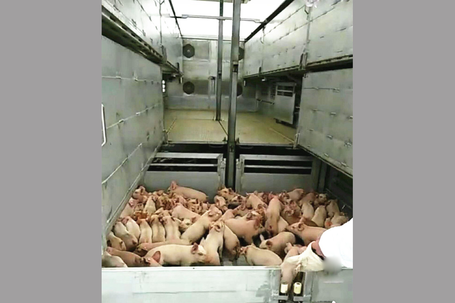 畜禽運(yùn)輸車是我公司在借鑒國內(nèi)外產(chǎn)品的基礎(chǔ)上,結(jié)合用戶實(shí)際需求新研發(fā)的一款運(yùn)輸仔豬、生豬、雞苗等畜禽的專用功能較強(qiáng)的運(yùn)輸車輛,是我公司傾力打造的一款專門面向活禽、牲畜運(yùn)輸市場(chǎng)的一款高端運(yùn)輸車,該款運(yùn)輸車旨在增強(qiáng)活禽、牲畜在運(yùn)輸過程中的舒適度、減少死亡率,提高運(yùn)輸效率,該車配備設(shè)施完善、自動(dòng)化程度高。廂式畜禽運(yùn)輸車可用于成品豬、生豬、豬仔、雞苗跨省運(yùn)輸,全程無泄漏,有糞液收集系統(tǒng)箱體采用全鋁合金型材制作,質(zhì)量輕、抗腐蝕性強(qiáng)。箱體中層安裝保溫隔板,頂部采用玻璃鋼,有效避免高溫傳導(dǎo),控制箱體內(nèi)部溫度。車廂內(nèi)部采用全液壓可調(diào)整分層結(jié)構(gòu),二層、三層、四層16欄(根據(jù)需求選擇)飲水系統(tǒng),側(cè)推拉通風(fēng)滑窗,帶電子排風(fēng)扇,視頻監(jiān)控,溫度顯示監(jiān)控,中間有隔欄,每層約承重300頭仔豬的重量。車廂后部選裝垂直液壓升降尾板,更實(shí)用!